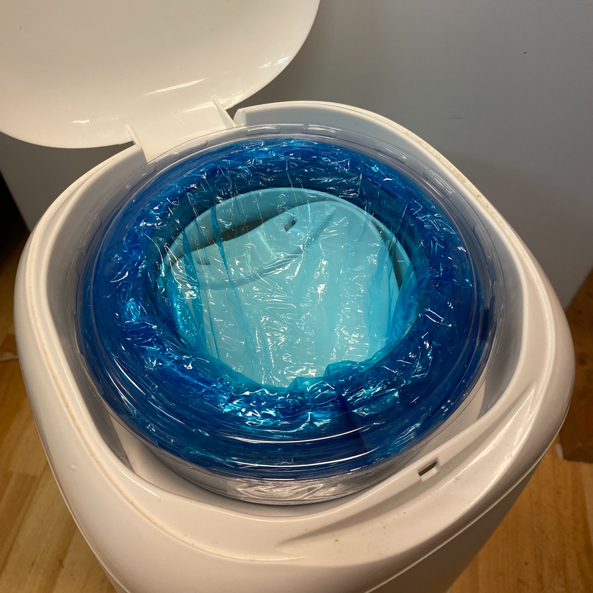 Bilderna visar montering i hink från Angelcare, men den allmänna proceduren gäller även för andra typer.
